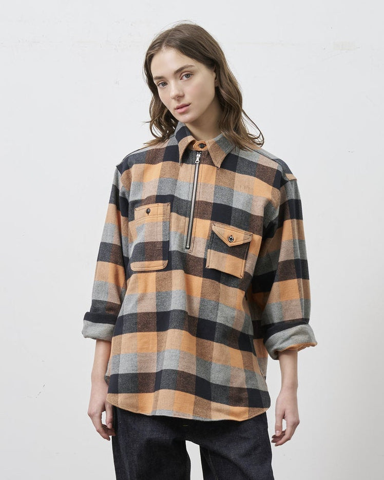 1930年代の〈BIG YANK〉ヴィンテージワークシャツを元に製作した、ハーフジップ仕様のフランネルチェックシャツ。