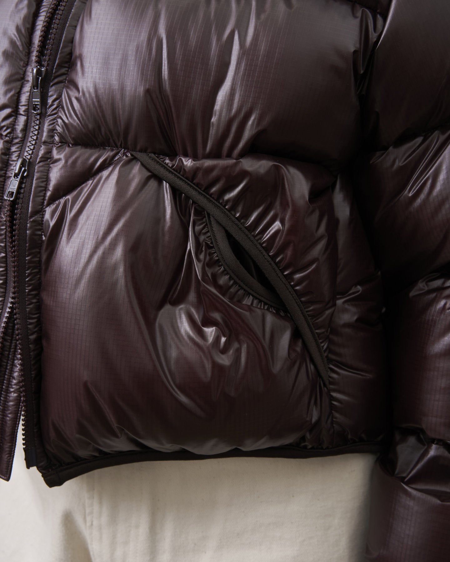 袖まわりを含めたシルエットを調整し、コンパクトな丈感ながら十分な保温性を確保。