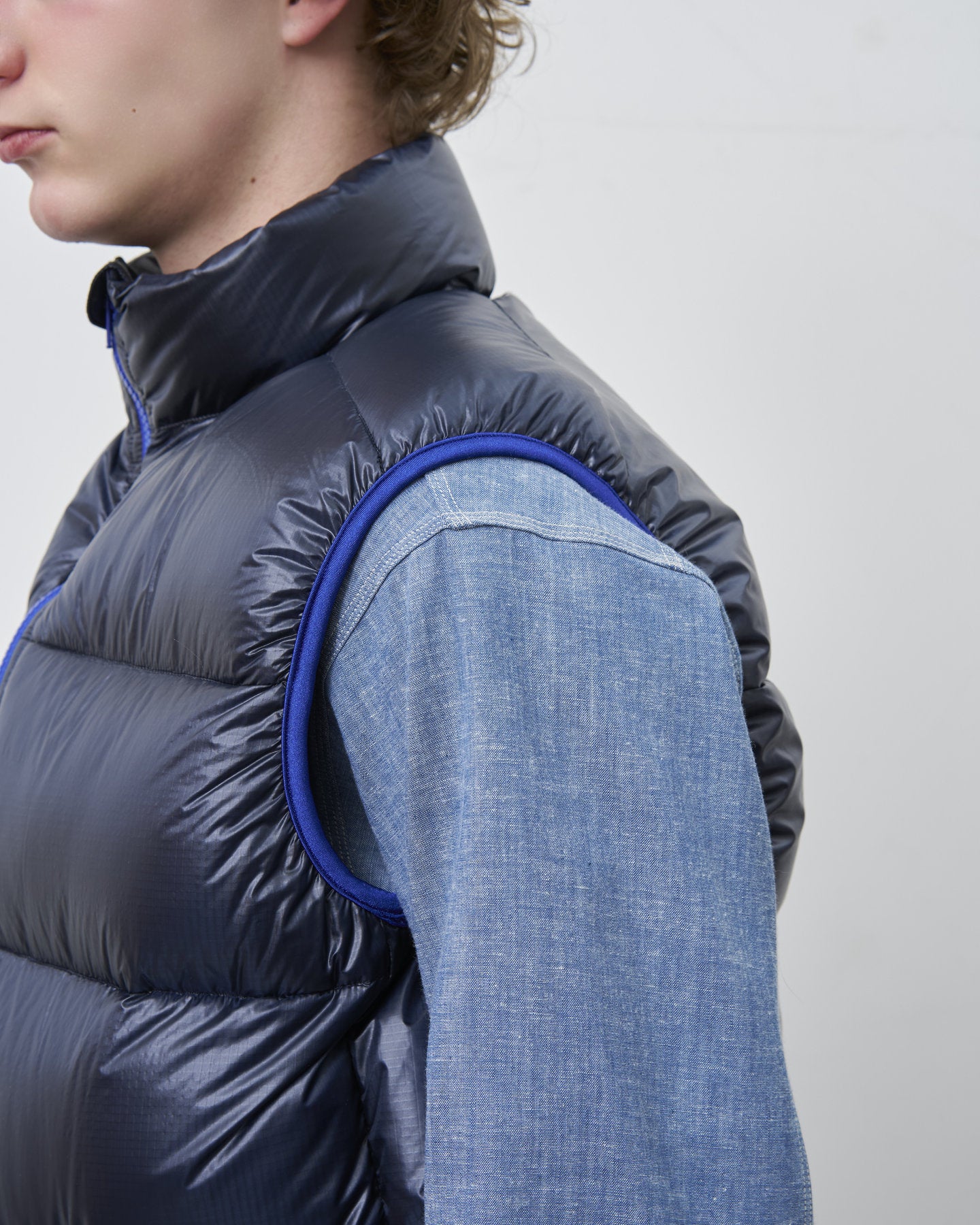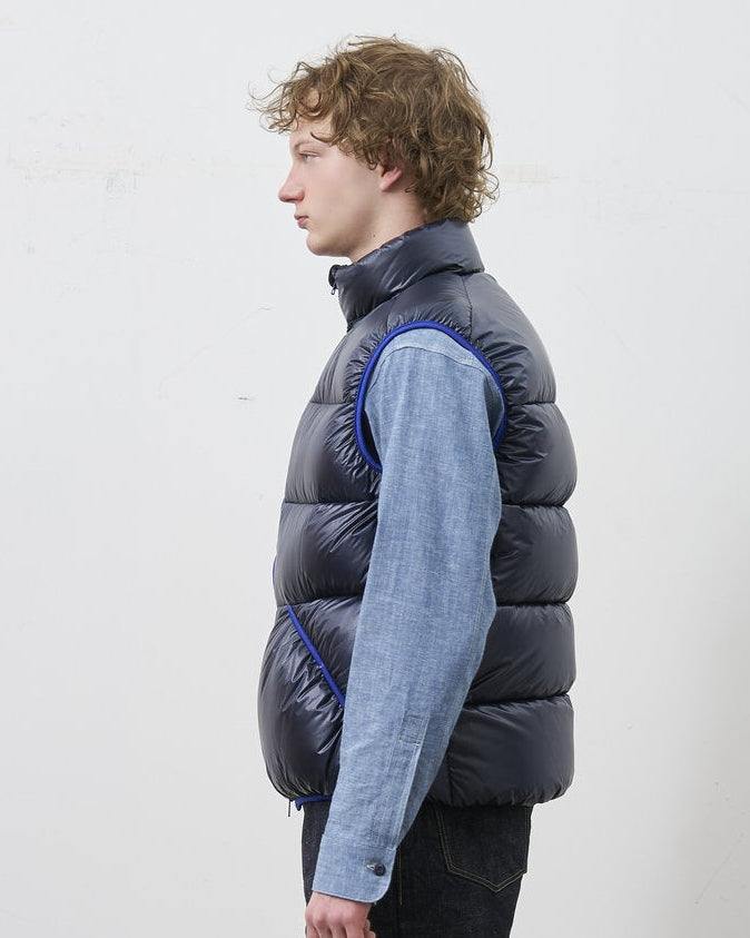 極限の軽さと暖かさを両立した、RMFCのスタンドカラー仕様ダウンベスト。